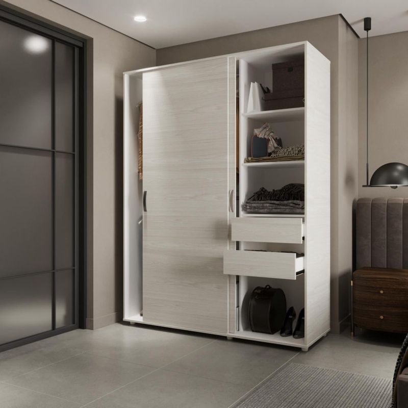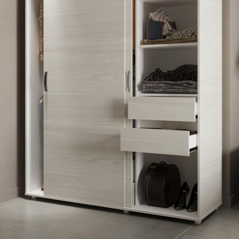 MueblesRecámaraClosets y ArmariosCloset Ropero Maderkit 150 x 200 x 50 cm puertas 2 cajones 2 modelo Berlin color Niebla Blanco