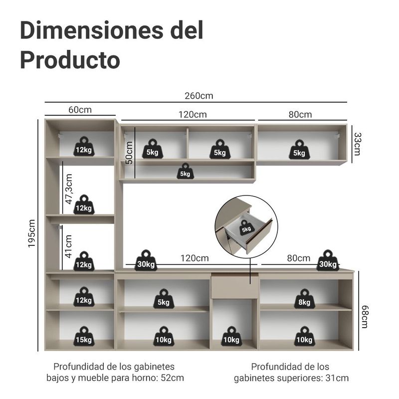 Cocina Integral Completa Modular Madesa Nice 260cm Crema 09