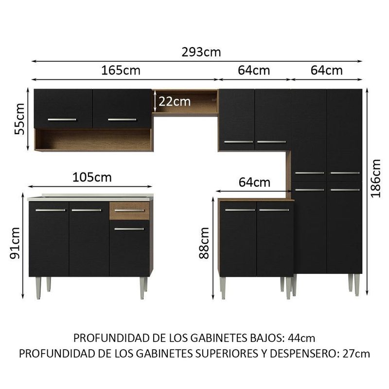 Cocina Modular Emilly 293 cm con Tarja Madesa