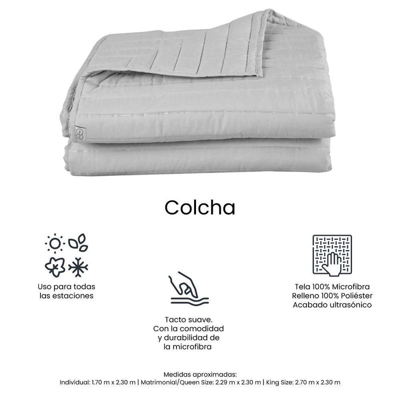 Colcha Acabado ultrasonico King Size Trinity Gris+ Almohada Frosty 2 RGH