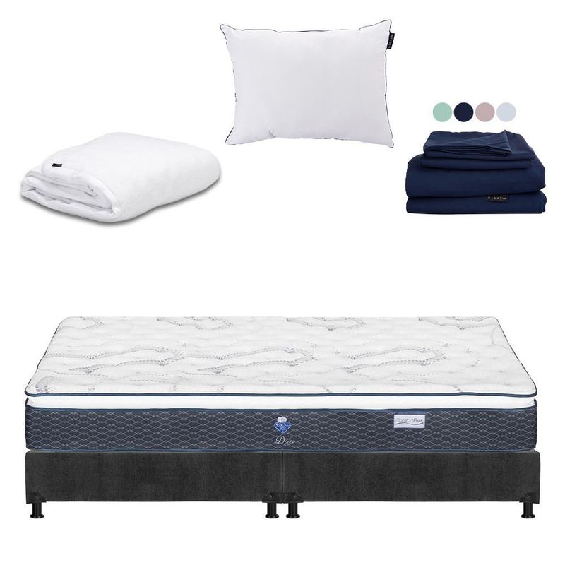 Colchones y BoxesColchonesKing SizeColchón King Size Dover Gris Carbón+ Box+ Almohada+ Protector+ Sabanas CDZ