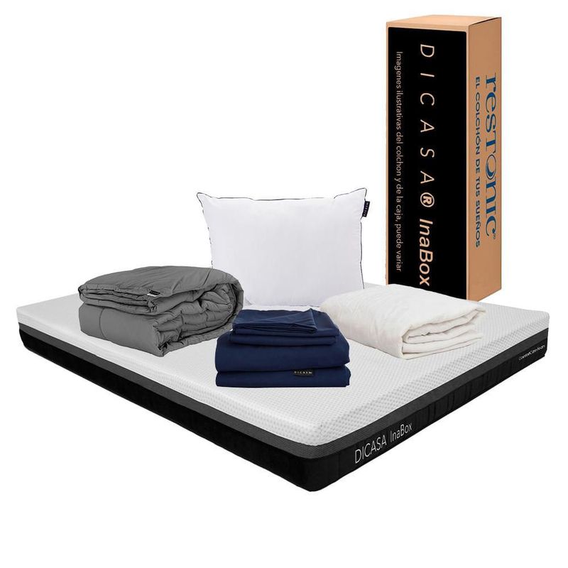Colchón King Size InaBox +Almohada + Protector + Sábanas + Edredón CZD