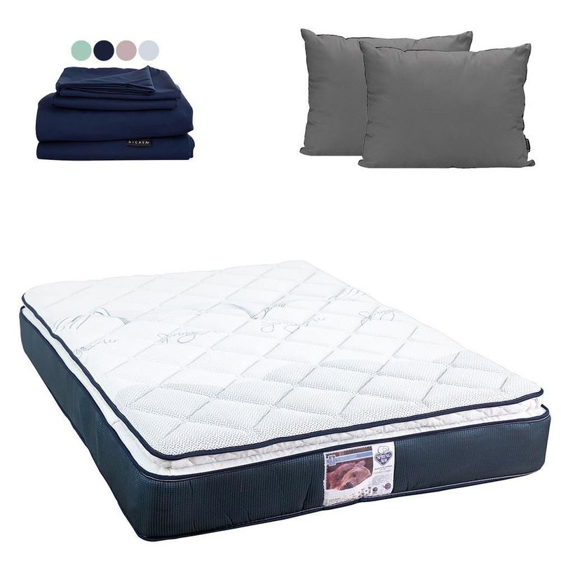 Colchón King Size Spring Air Monaco + Almohada 2 Pack + Sábanas Softy CZD