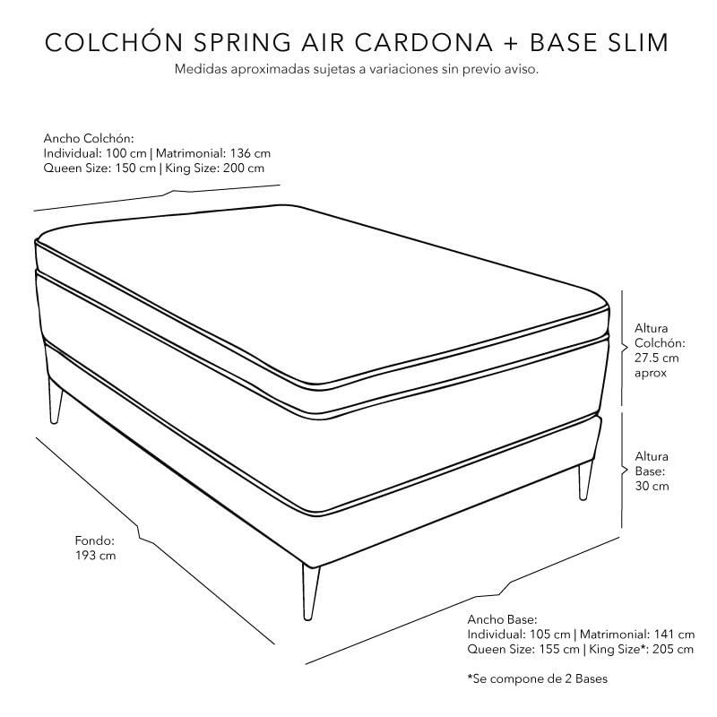 Colchones y BoxesColchonesMatrimonialColchón Matrimonial Spring Air Cardona+ Base Slim Gris Carbón CDZ