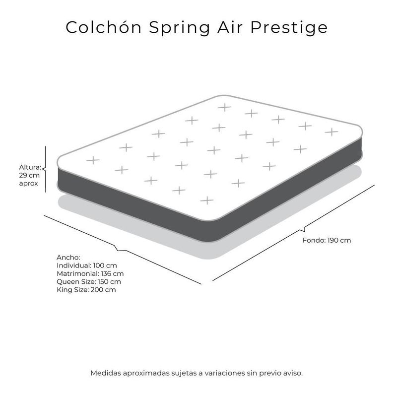 Colchón Matrimonial Spring Air Prestige Gris+ Almohada Royal+ Sabanas Royal RGH