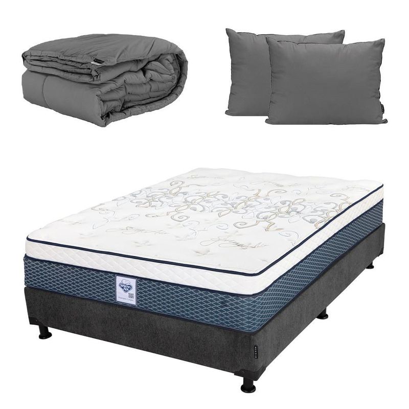Colchón Queen Size Cantabria+ Box Gris Carbón+ Almohada+ Edredón CDZ