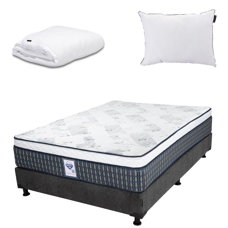 Colchón Queen Size Cardona Gris Carbón+ Box+ Almohada+ Protector CDZ