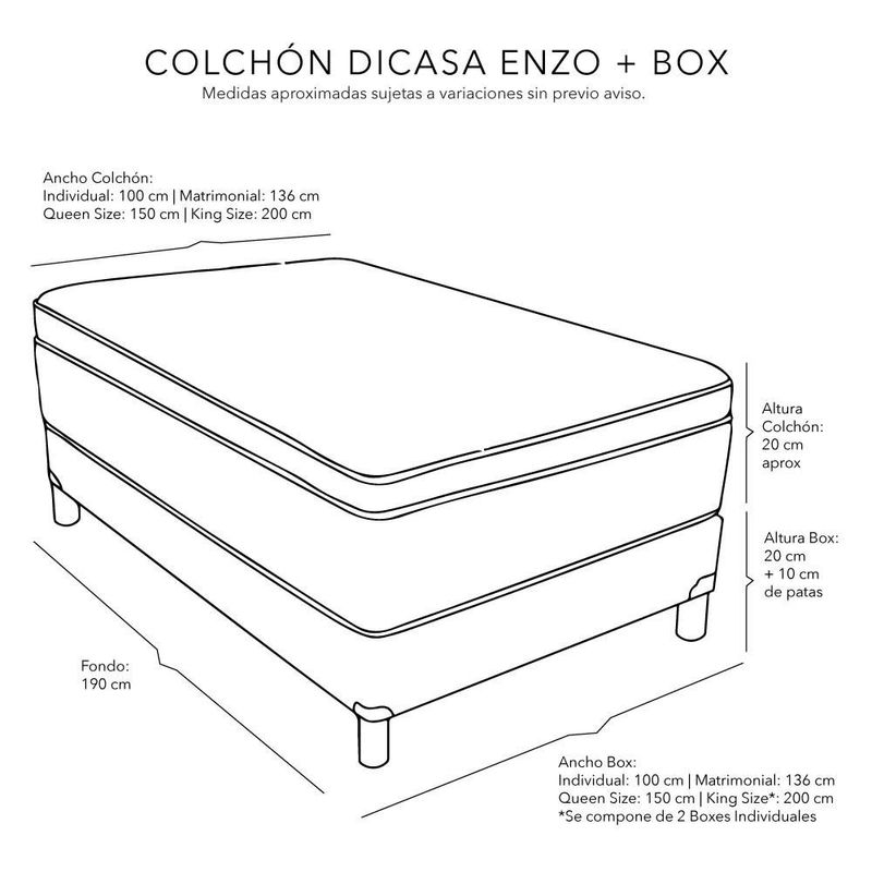 Colchones y BoxesColchonesMatrimonialColchón Queen Size Restonic Enzo Gris+ Box+ Almohada 2Pack CDZ
