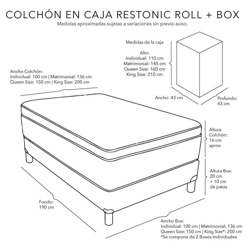 Colchón Queen Size Roll +Box + Almohada O + Sábanas S + Protector CZD