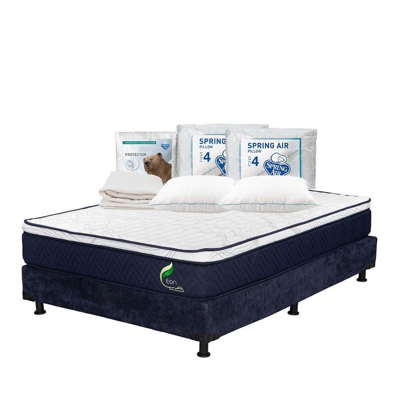 Colchón Queen Size Trinity Eon Azul+ Box+ Almohada+ Protector TRY