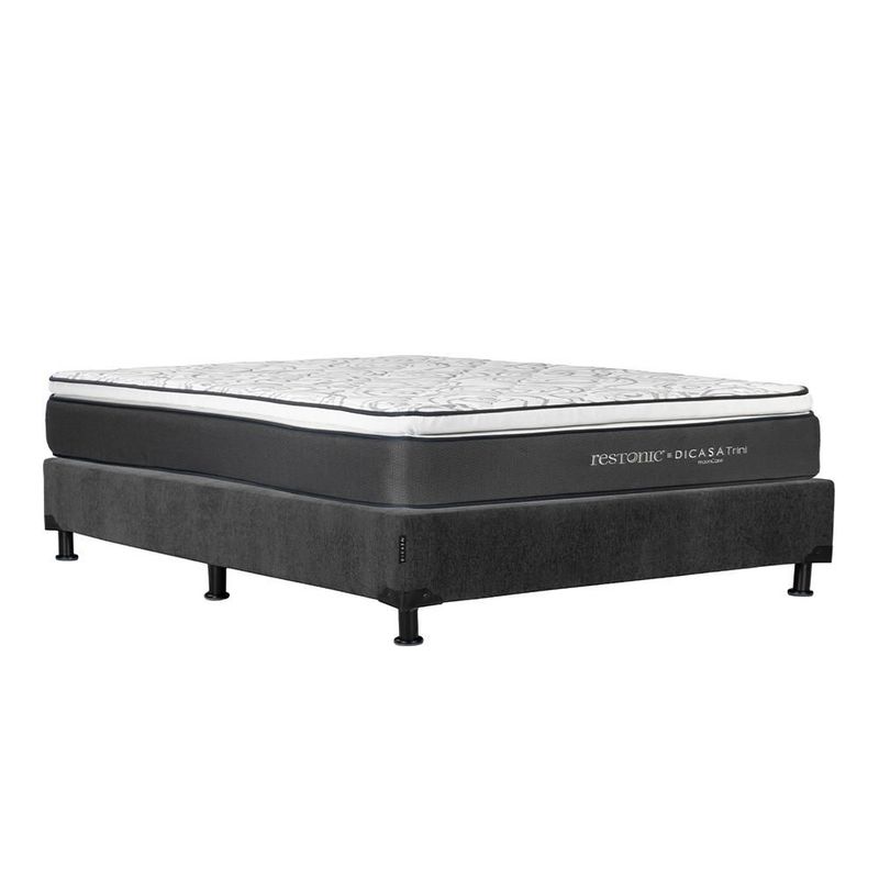 Colchon Restonic Trini Gris Matrimonial+ Box+ Almohada One+ Protector Cloud+ Sabanas Softy CZD