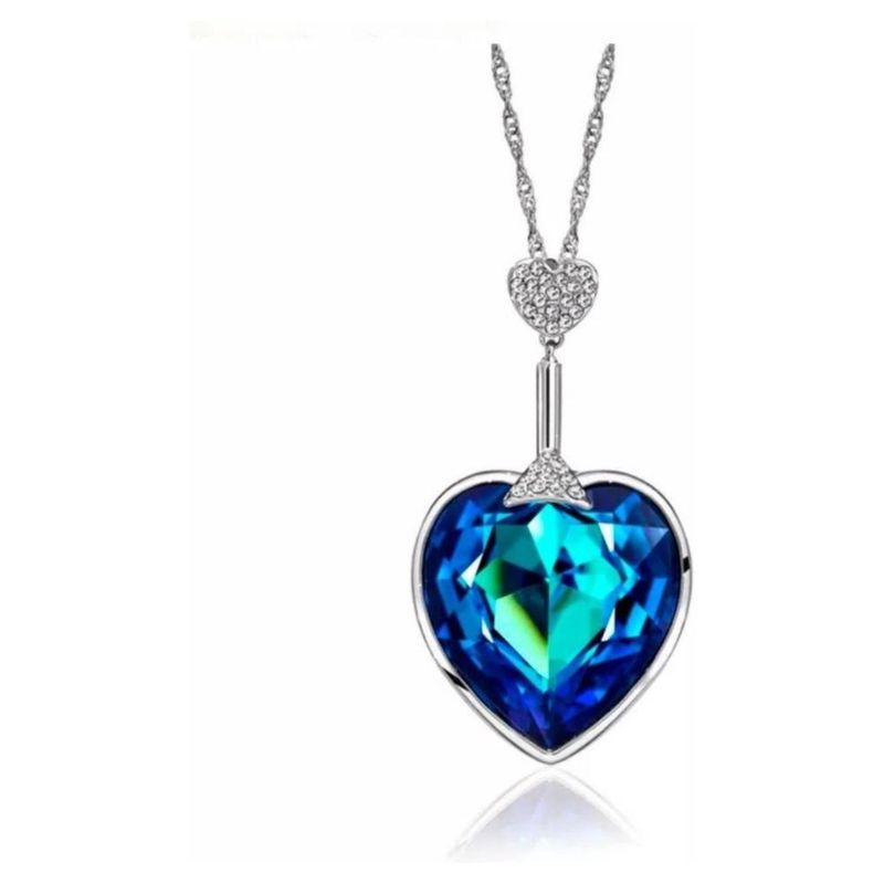 Moda y accesoriosJoyeríaCollares y DijesCollar Corazón De Cristales Oro 14k Laminado Azul