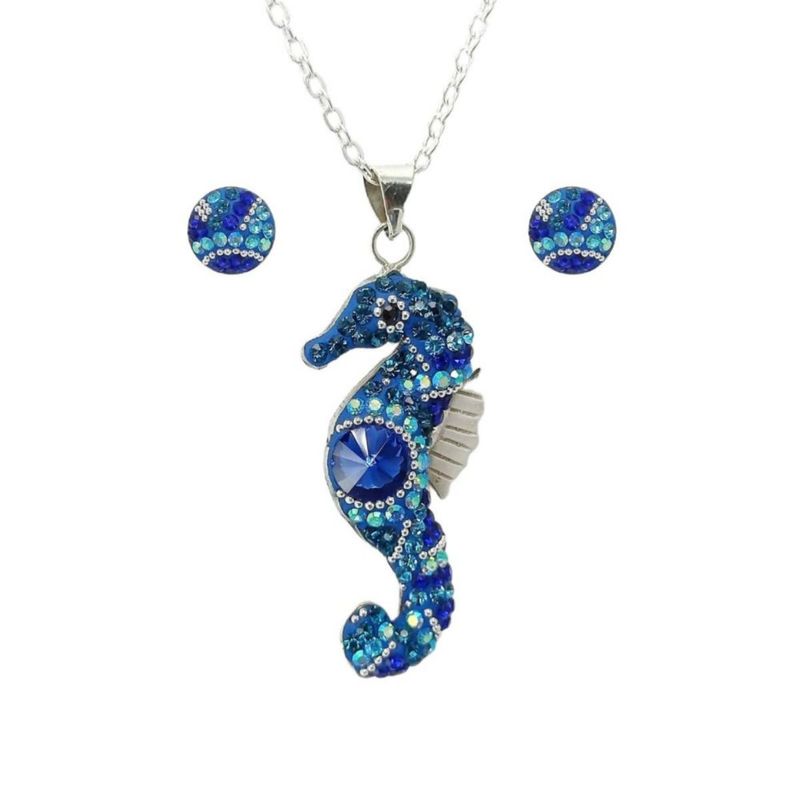 Moda y accesoriosJoyeríaSetsCollar y aretes Seahorse azul con plata .925 Zvezda