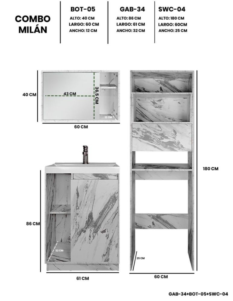 MueblesMuebles de BañoGabinetesCombo De Gabinetes Para Baño MILÁN.