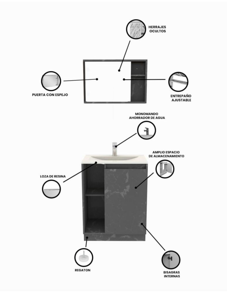 MueblesMuebles de BañoGabinetesCombo Gabinete Para Baño ROMA Y Botiquín