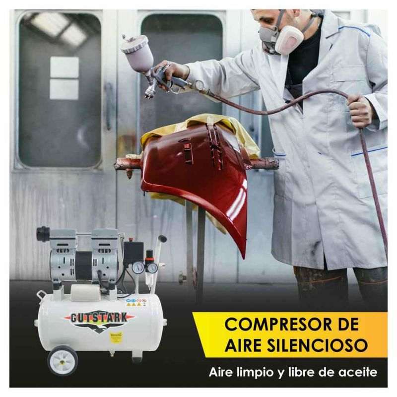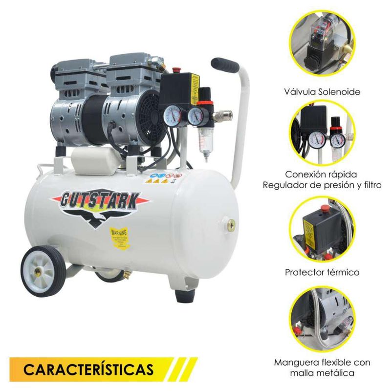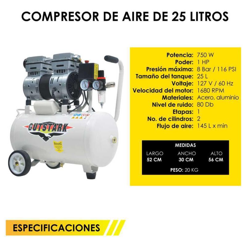 Compresor Aire Silencioso Electrico Portatil 25L 127V 1Hp 2 Pistones