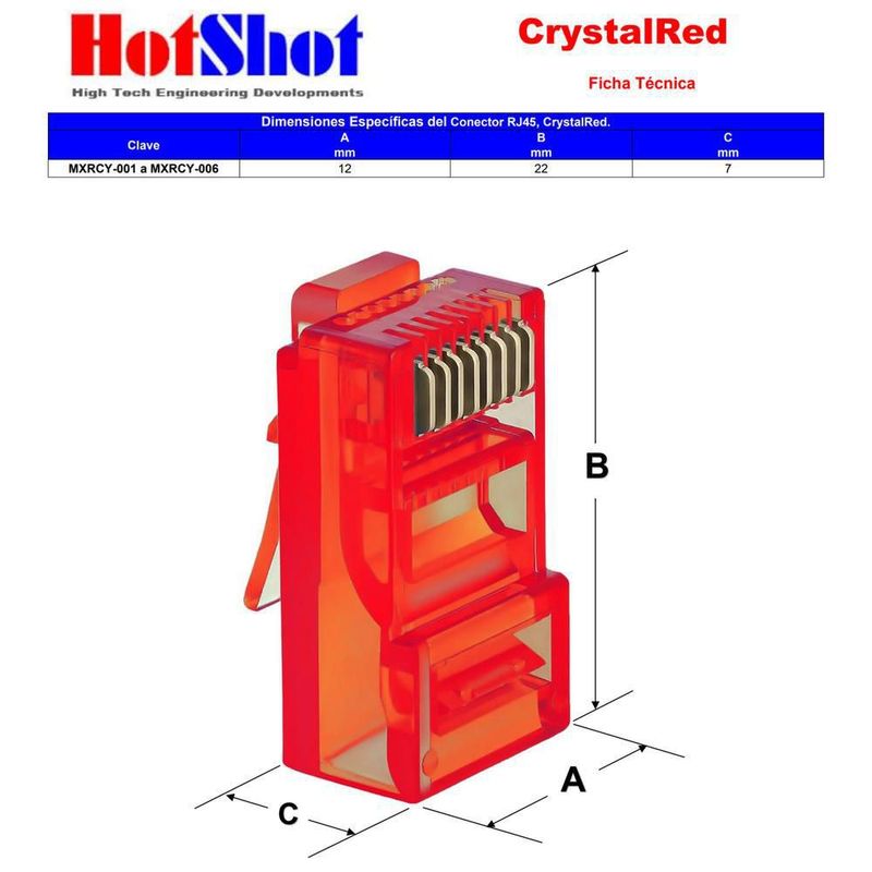 Conector RJ45 de Paso CrystalRed MXRCY-004 Conector Cable Ethernet