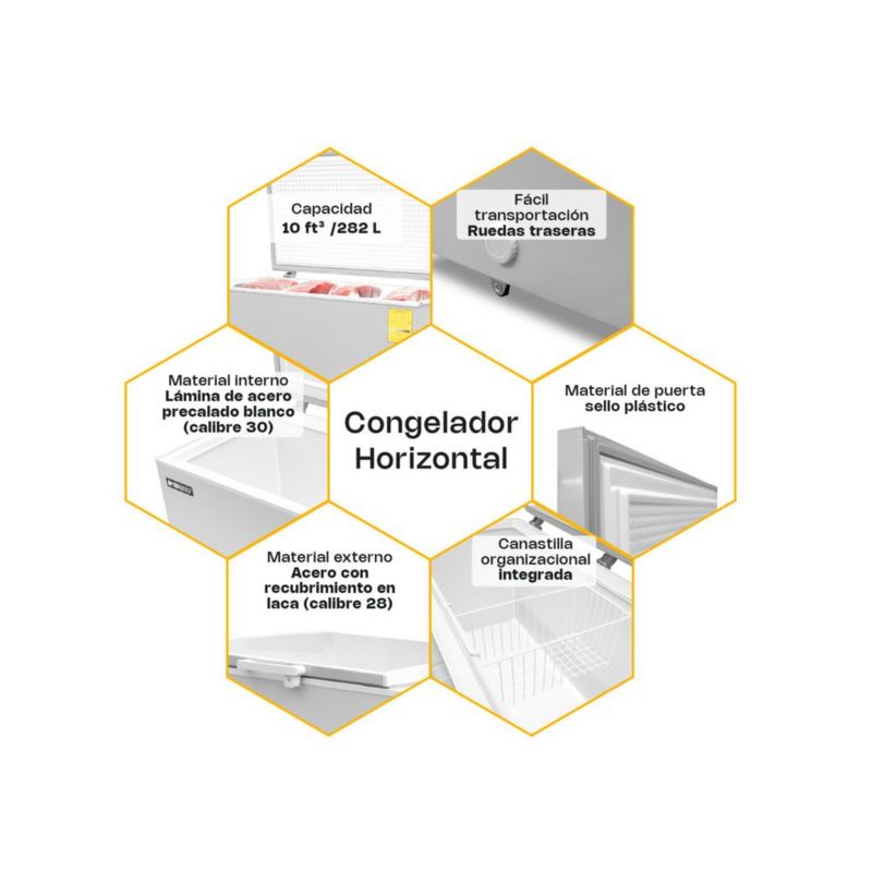 Línea blancaRefrigeradores y congeladoresCongeladoresCONGELADOR RHINO CONGECO-10 | Congelador Horizontal | 10 Pies Cúbicos | Canastilla De Acero | Carnicería Pastelería Super Mercados