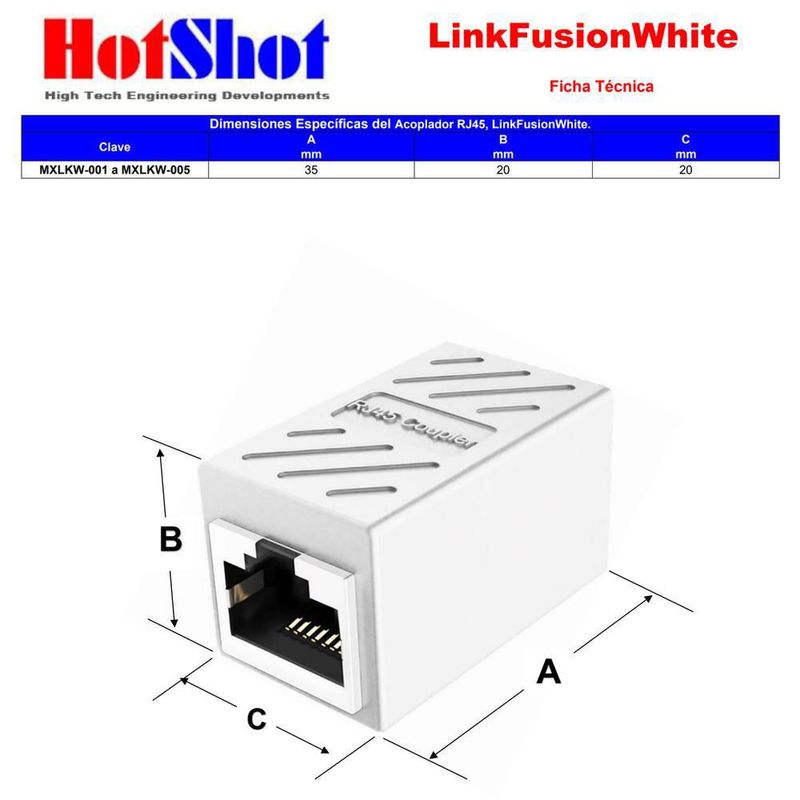 CómputoAccesorios y periféricosCables y AdaptadoresCople RJ45 LinkFusionWhite MXLKW-001 Conector RJ45