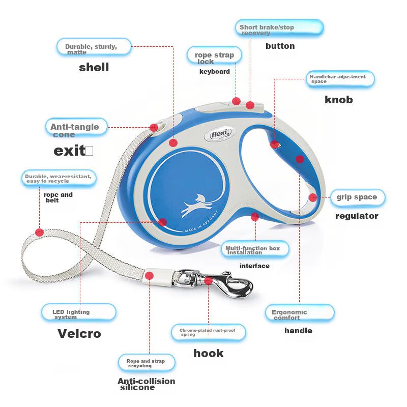 MascotasPerrosCollares y CorreasCorrea retráctil para perro 5m Azul
