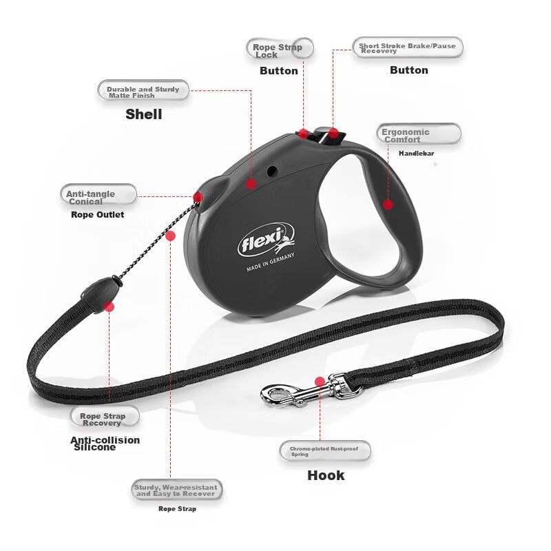 Correa retráctil para perros 5m Negra