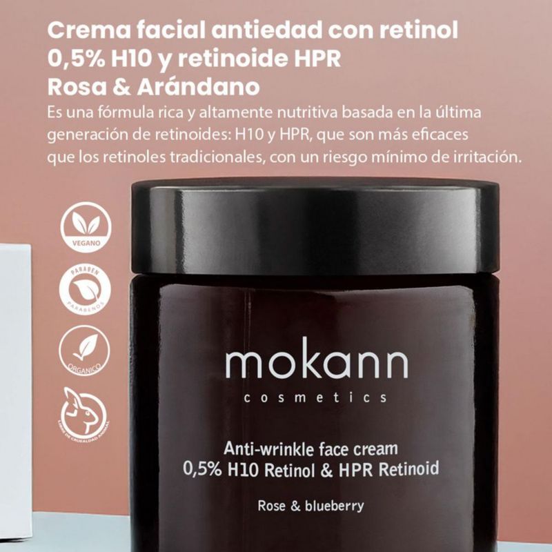 Belleza y Cuidado PersonalCuidado de la pielTratamientos Faciales y CorporalesCrema antiarrugas Mokann retinol 0.5 reafirmante noche 60ml