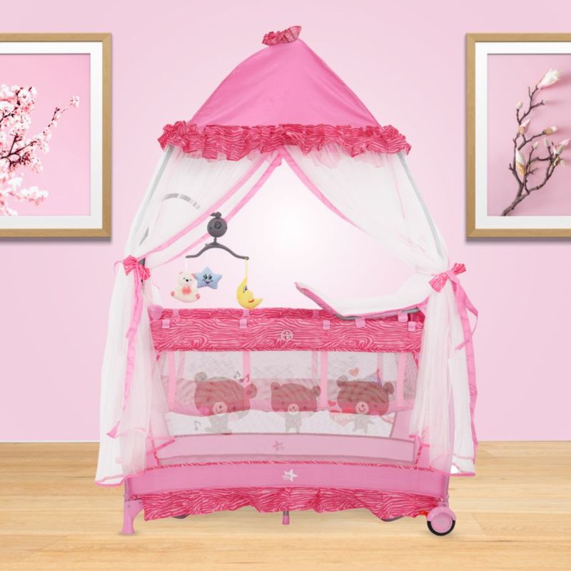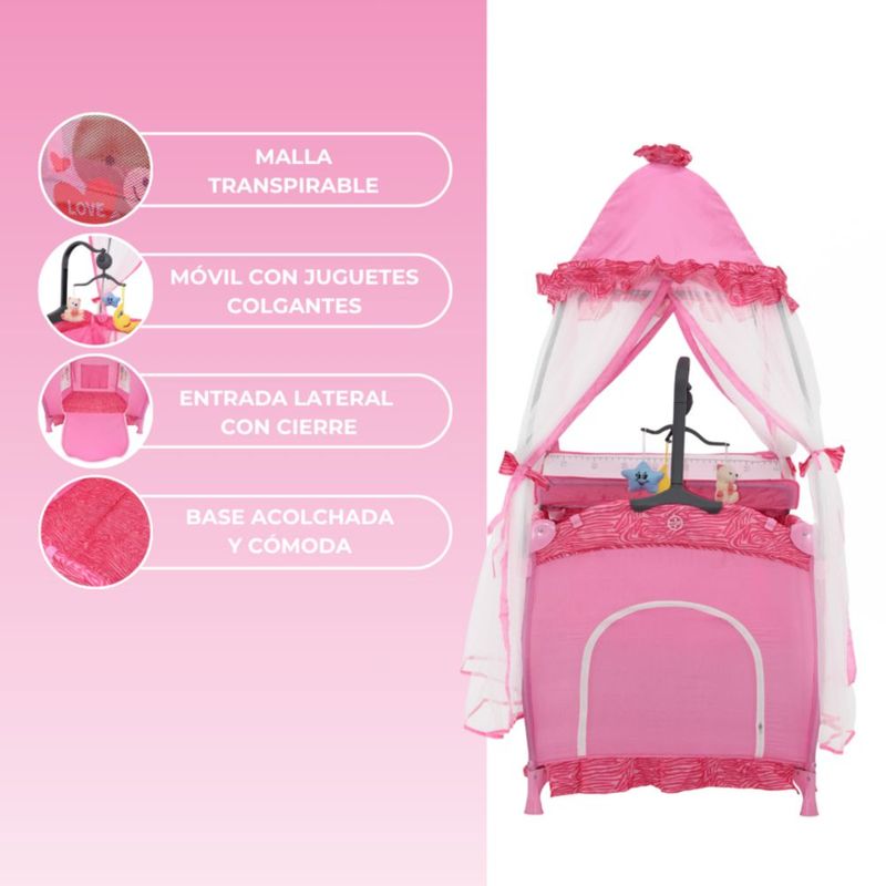 Cuna Corral Bebe Starkids Draco Toldo Movil Juguetes Musical Rosa