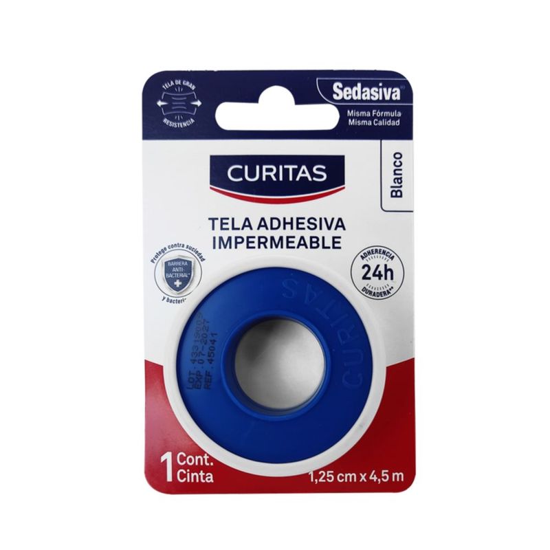 Salud y Equipamiento MédicoFarmaciaBotiquínCURITAS TELA ADHESIVA BLANCO 1.25cm x 4.5m