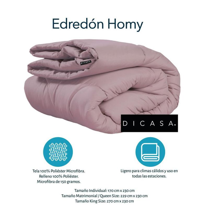 Edredón Individual Homy Lila + Sábanas Softy Platino + Almohada One RGH