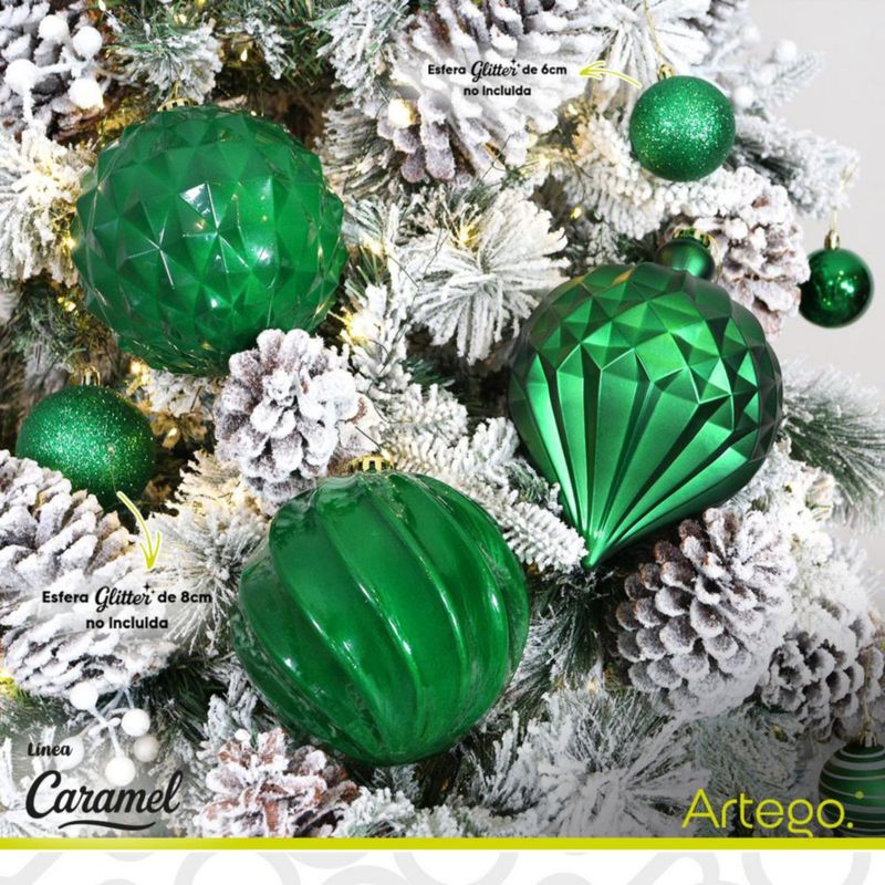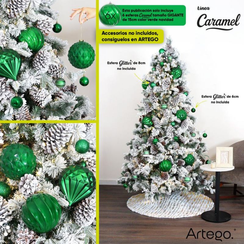 Esferas para árbol de navidad Artego extra grandes de 15 cm de diámetro paq 6 esferas Verde Navidad * Línea Caramel 3 texturas y acabados diferentes