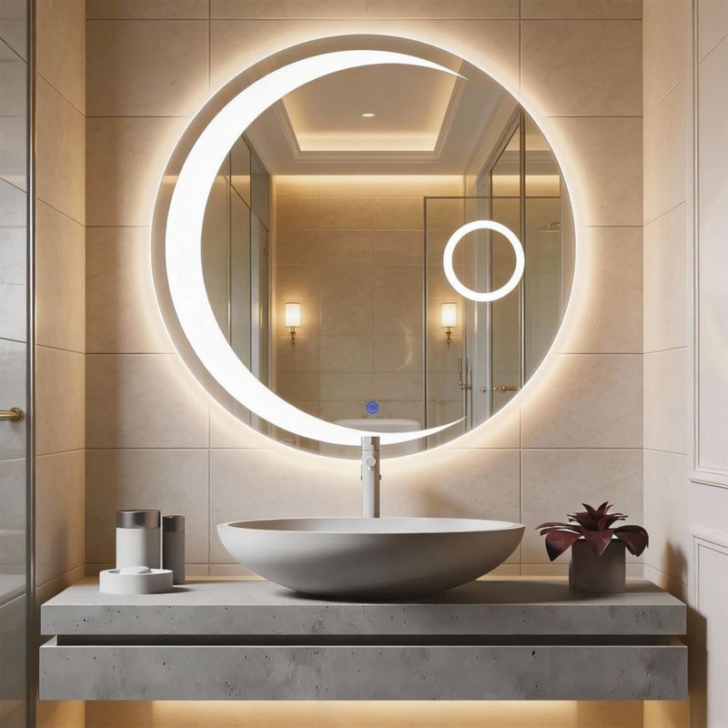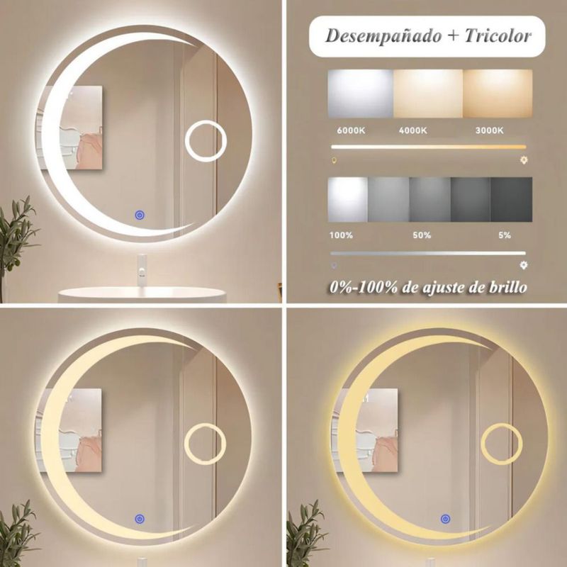 Espejo De Baño Circular Luna Con Iluminación LED ajustable distintas tonalidades