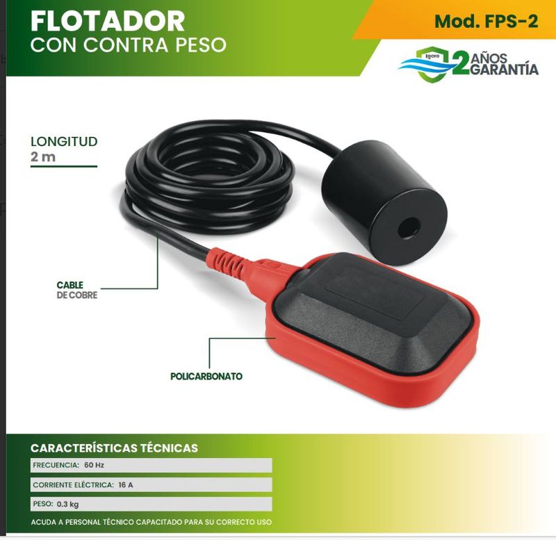 Flotador Eléctrico Automático para Bomba de Agua con Contrapeso, Cable 2 m, Interruptor de Nivel para Tinaco y Cisterna, 16 A