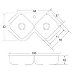 HerramientasPlomeríaLlaves y RegaderasFregadero Cocina Submontar 2 Tinas Esquinero100x52x18 Cse110