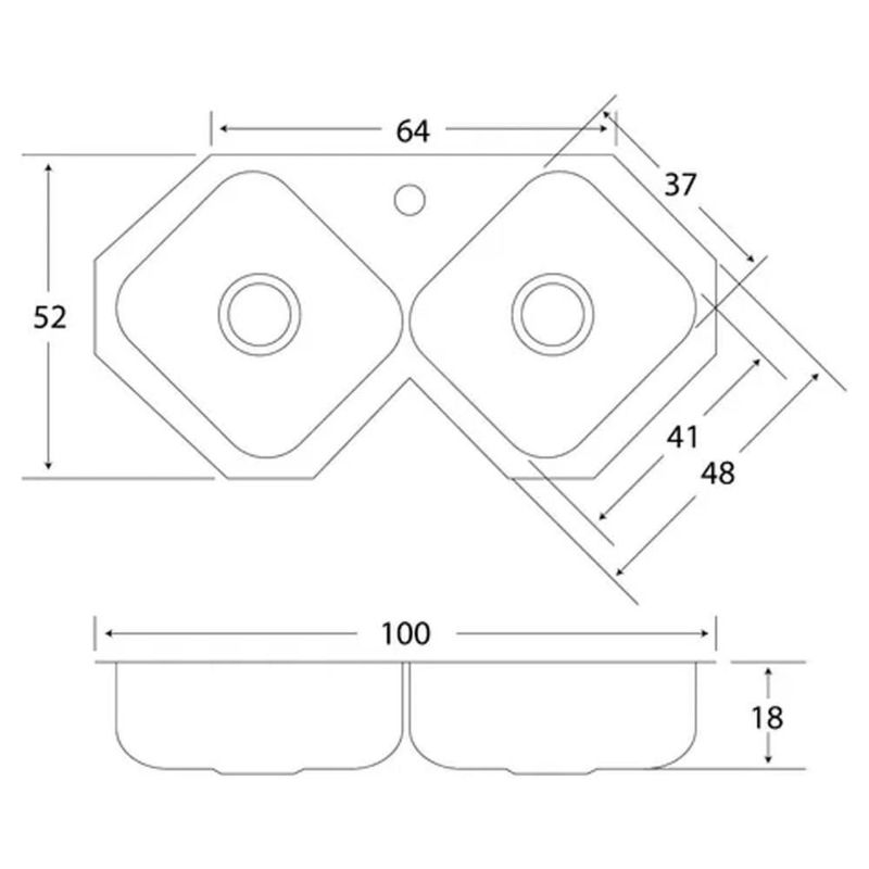 Fregadero Cocina Submontar 2 Tinas Esquinero100x52x18 Cse110