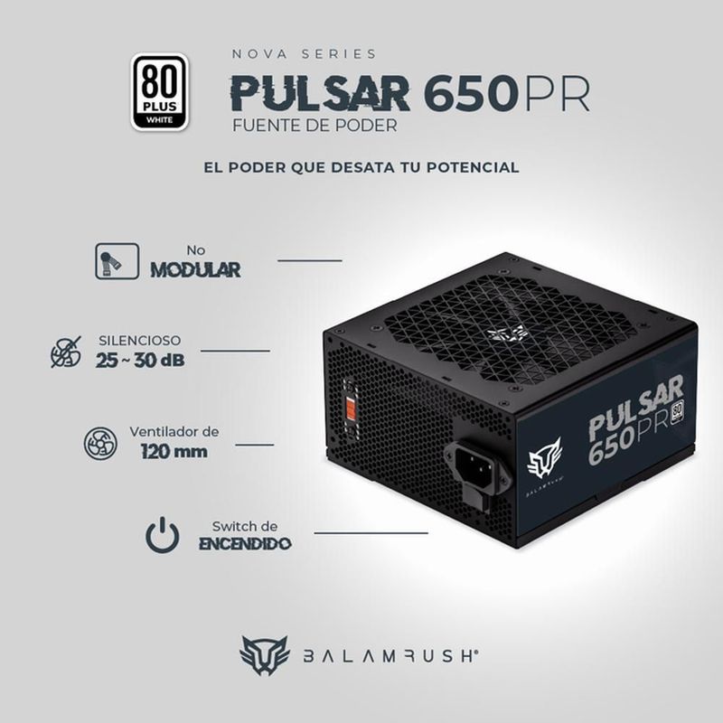 Fuente de poder 650w gamer balam rush pulsar 650pr negro