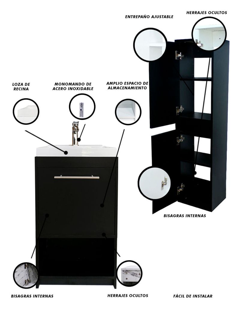 MueblesMuebles de BañoGabinetesGabinete Con Lavamanos y Monomando + Gabinete Organizador Seine
