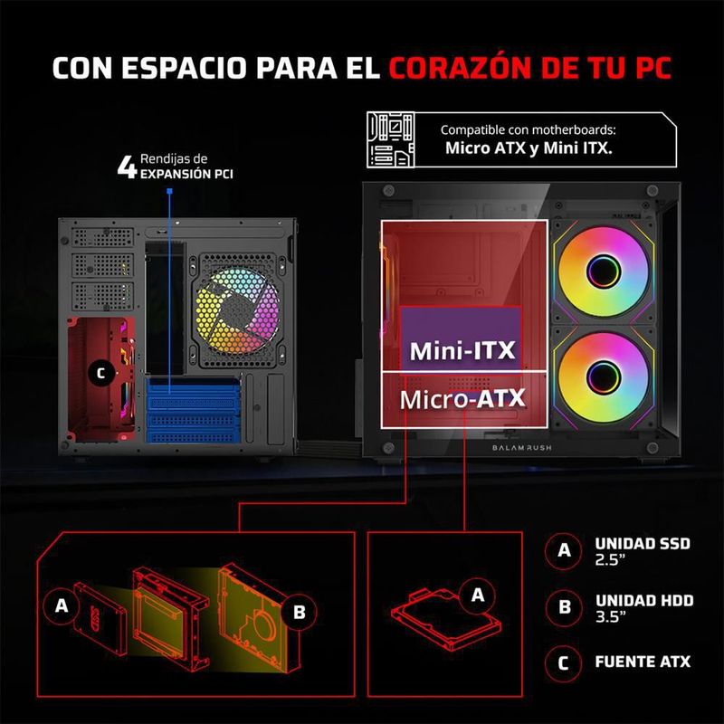 CómputoAccesorios y periféricosComponentesGabinete gamer balam rush tank 3700 m-atx 3 fan br-943864