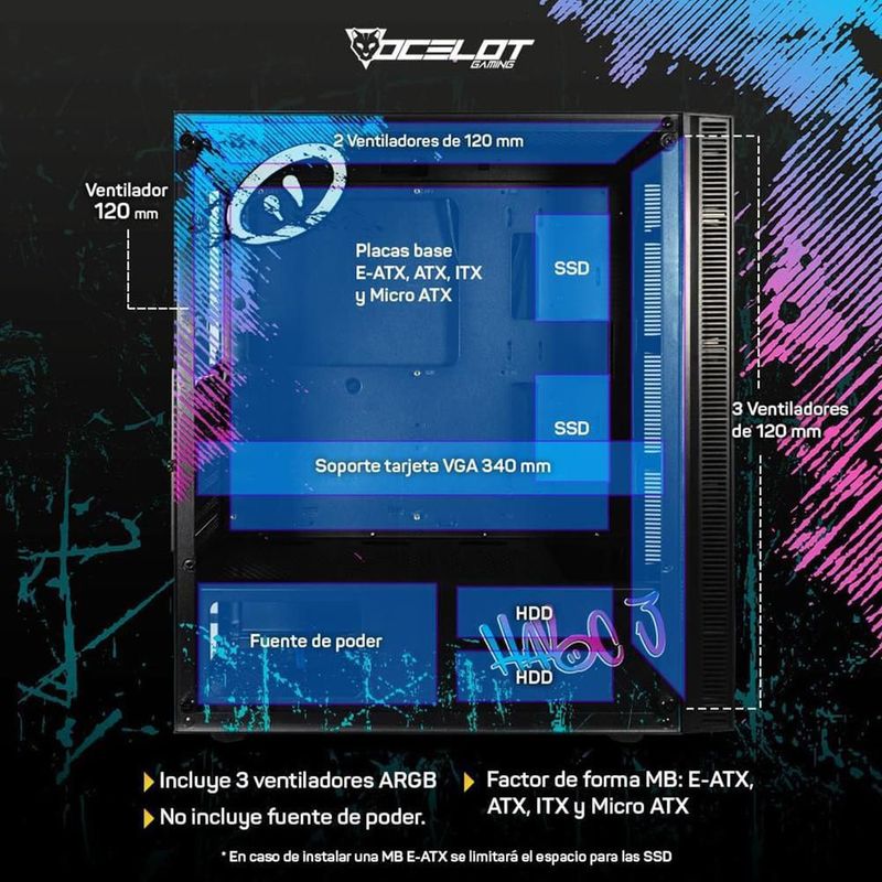 Gabinete Gamer OC-HAVOC 3 E-ATX 3 Fan ARGB Cristal Templado CyberPunk Urbano