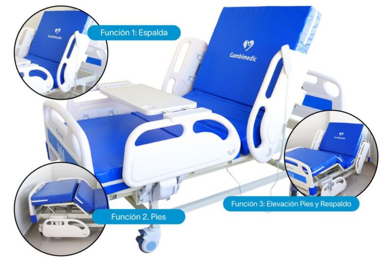 Salud y Equipamiento MédicoEquipo MédicoCamas, Camillas y ColchonesGambimedic Cama Hospital Electrica 3 Posiciones Lujo Barandales Incluye Colchon 1 Y Portasuero Ruedas Con Freno Control Electrico