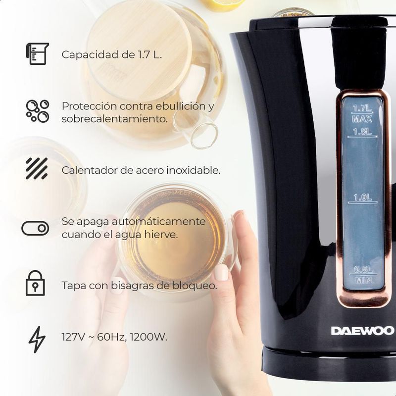 Línea blancaElectrodomésticosCafeteras y TeterasHervidor eléctrico de agua inalámbrico 1.7 L Daewoo