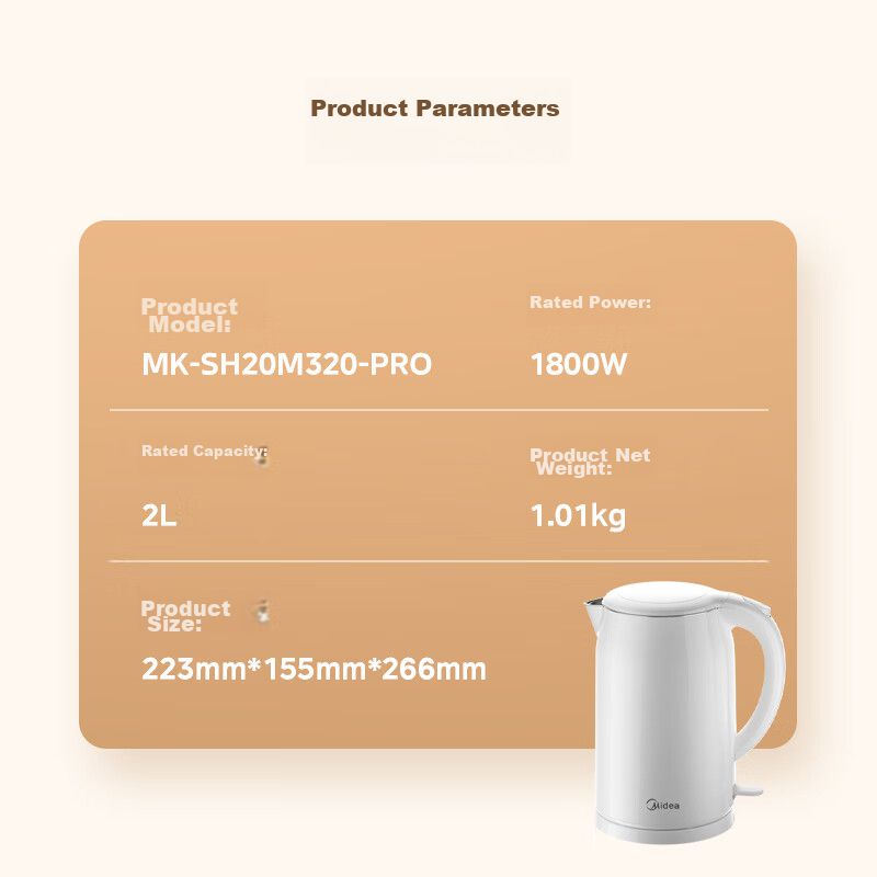 Hervidor Eléctrico Midea Mk-Sh20M320 2 Litros Acero Inoxidable