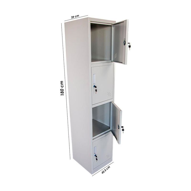 Ilios Innova | Locker Metálico 4 Espacios Gris con Llave individual