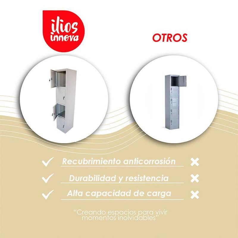 MueblesOficinaCajoneras y ArchiverosIlios Innova | Locker Metálico 4 Espacios Gris con Llave individual