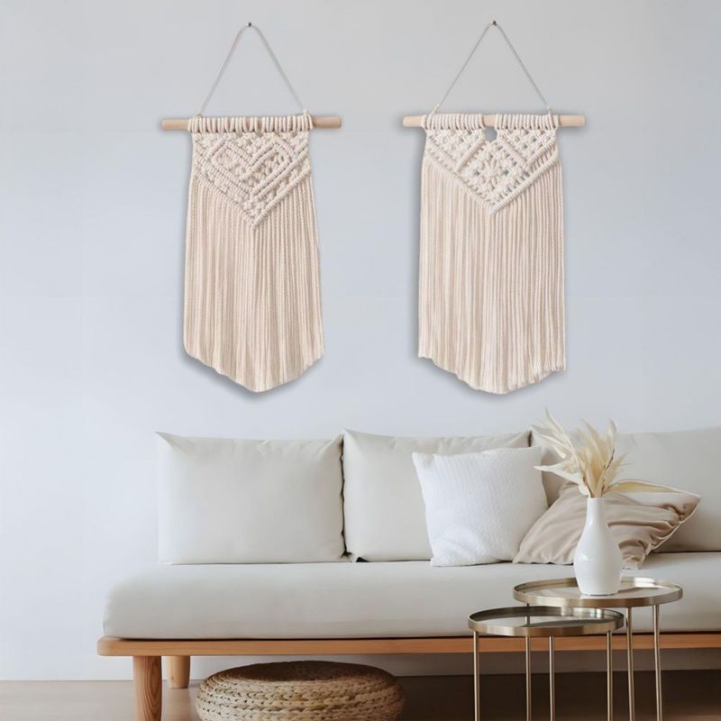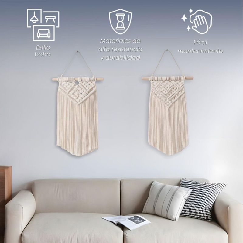 HogarDecoraciónMercería y ManualidadesIlios Innova | Set de 2 Tapices colgantes Boho Beige, artesanales hechos a mano, decoración de pared, estilo bohemio para sala, dormitorio u oficina.