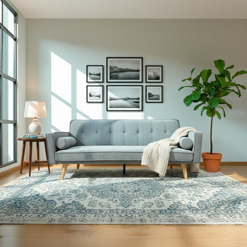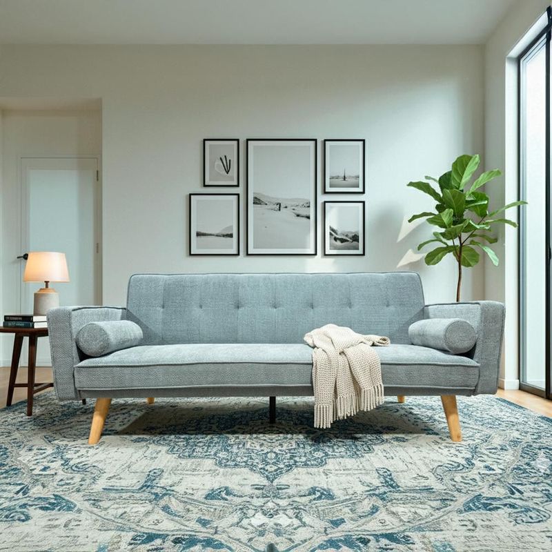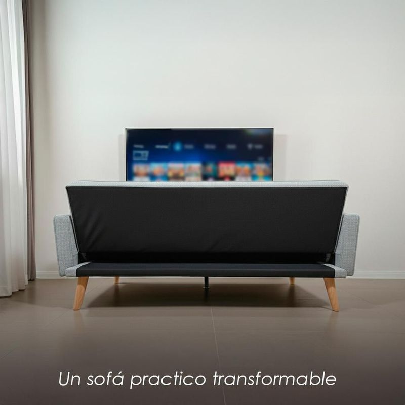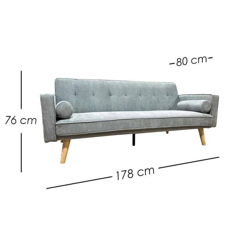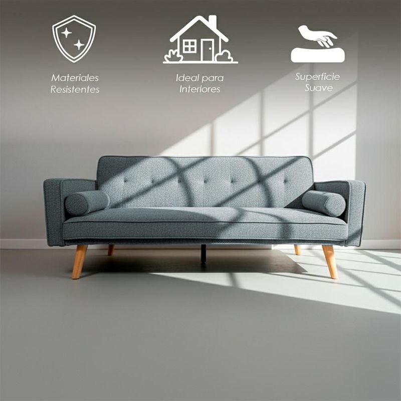Ilios Innova | Sofá Cama Marin Gris Convertible 2 Plazas, Textil Resistente, Estilo Nórdico Minimalista con Patas de Madera y 2 Cojines Incluidos