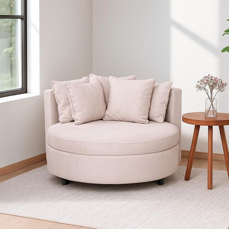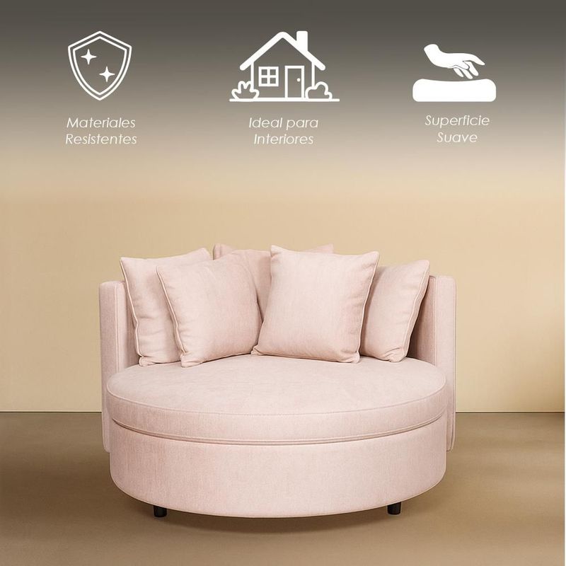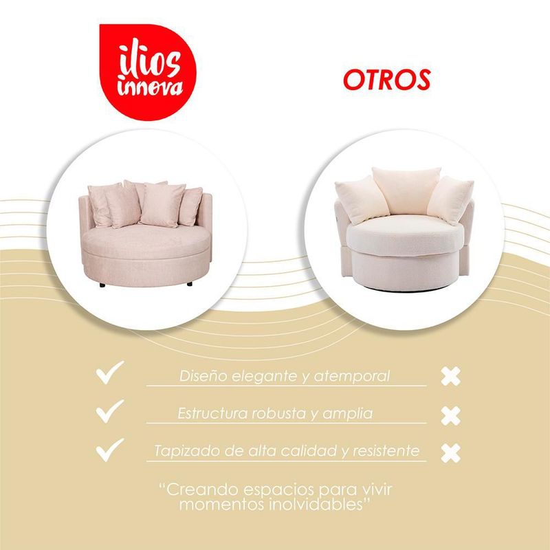 Ilios Innova | Sofá Redondo de Una Plaza con Tapizado Beige. Diseño Moderno y Elegante para Sala u Oficina. Sillón Individual Descanso y Decoración.