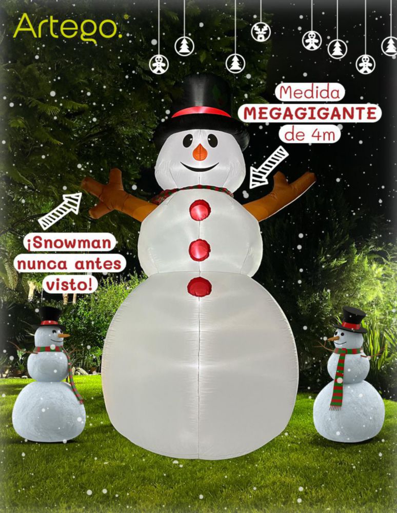 Inflable de Navidad mono de nieve SNOWMAN mega gigante 4m de alto con luces led