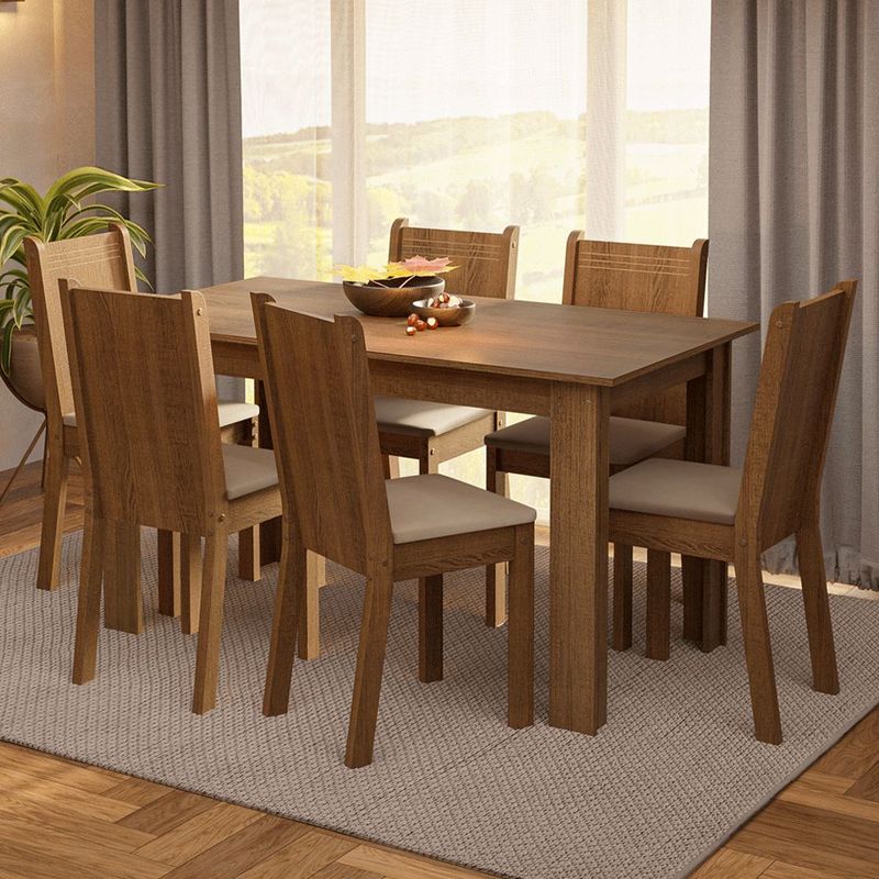 Juego de Comedor Mesa + 6 Sillas Marrón/Beige Madesa