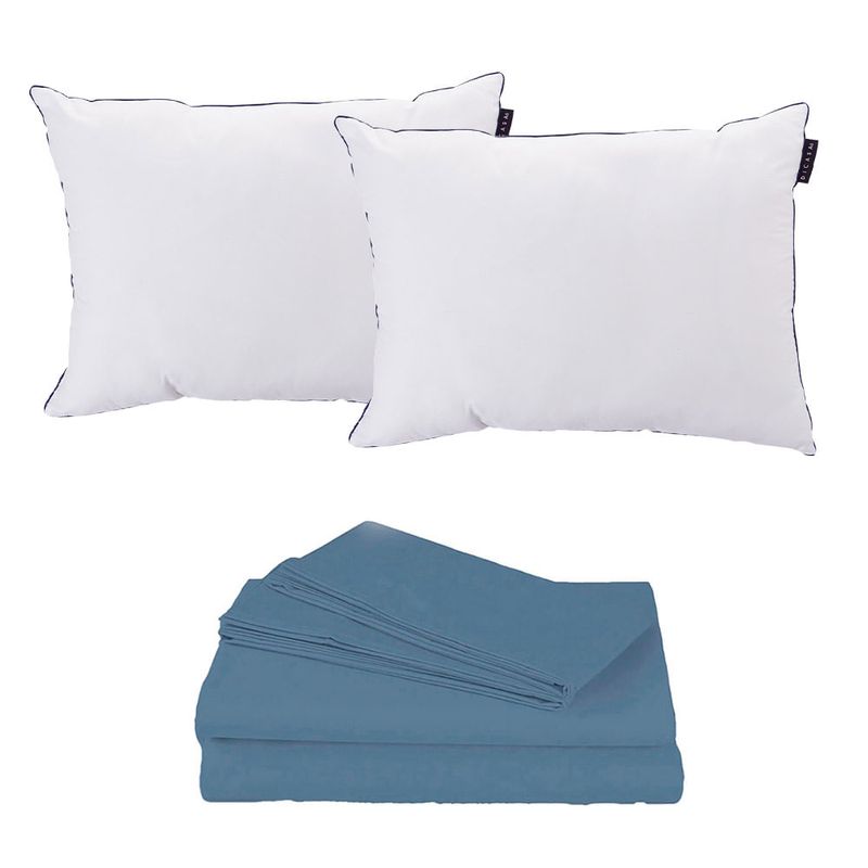 Juego de Sábanas King Size Dicasa Soft Azul Acero + 2 Almohada One CZD