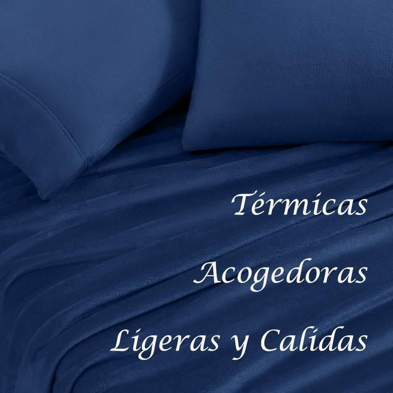 Juego de Sábanas Polar Individual Azul Marino Térmicas, Suaves y Ligeras Kyuden Home